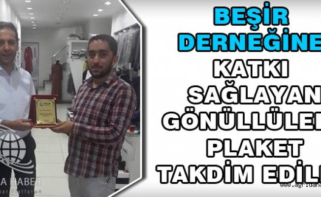 Ağrı Beşir Derneğine Katkı Sağlayan Gönüllülülere Plaket Takdim Edildi