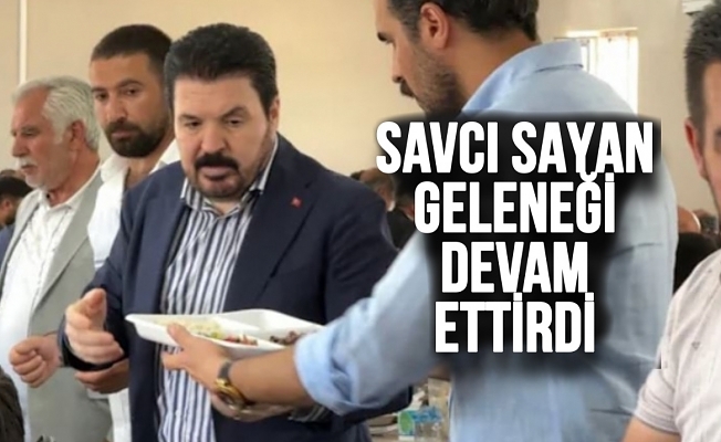 Çok sayıda vatandaşın, siyasetçinin, bürokrasinin, Sivil Toplum Kuruluşu Başkan ve temsilcilerinin katıldığı mevlit programında Savcı Sayan ve yeğenleri tek tip askeri düzen şeklinde sıraya girerek katılımcılara yemek ikramında bulundu. Sayan ailesi tarafından yıllardan beridir süre gelen bu gelenekten ötürü mevlit programına katılanlar teşekkür etti.