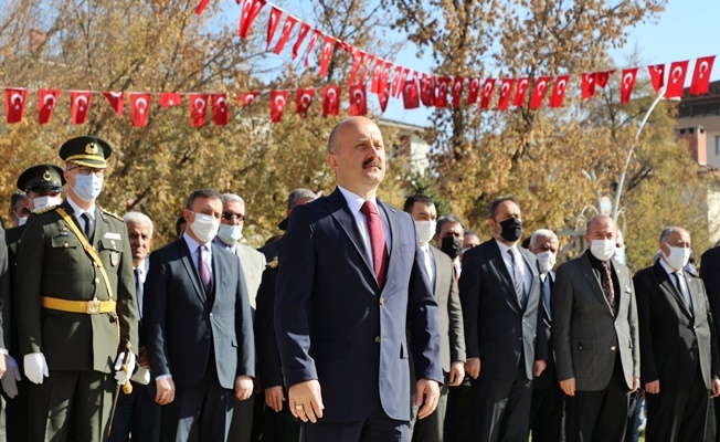 Ağrı'da, 29 Ekim Cumhuriyet Bayramı nedeniyle Abide meydanında çelenk sunma töreni düzenlendi. Çelenk sunumunun ardından saygı duruşunda bulunulması ve İstiklal Marşı'nın okunması ile Türk bayrağı göndere çekildi.