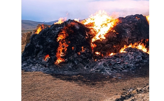 Ağrı'nın Taşlıçay ilçesinde Bağlı Yeltepe köyünde yıldırımın düştüğü kışlık otlar yandı.