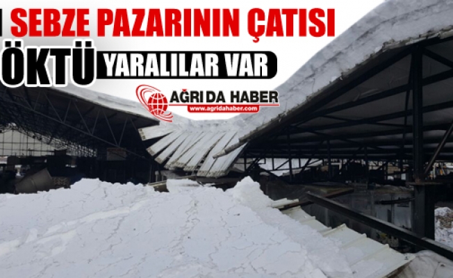 Ağrı'da eski Van Caddesi üzerinde bulunan 6 bin metre kapalı alana sahip Sebze Pazarının çatısının bir bölümü kardan dolayı çöktü.