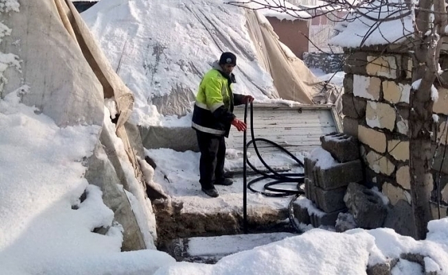 Ağrı Belediyesine bağlı Su ve Kanalizasyon İşleri Müdürlüğüne bağlı ekipler, eksi 27 derece sıcaklıkta su problemi yaşayan vatandaşların yardımına koşuyor. Kanalizasyon sorunları ve donma gibi problemler için mahalle mahalle gezen ekipler mağduriyet yaşanmaması için mücadele ediyor.