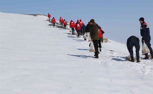 Çetin kış şartlarının hakim olduğu Ağrı'da, jandarma, Milli Parklar ve Doğa Koruma Müdürlüğü ile Kızılay ekipleri, yaban hayvanları için doğaya 500 kilo yem bıraktı.