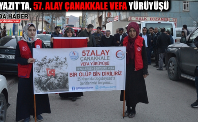 Gençlik ve Spor Bakanlığı tarafından tüm yurtta düzenlenen 57. Alay Çanakkale Vefa Yürüyüşü, Doğubayazıt ilçesinde de yoğun bir katılımla gerçekleştirildi.