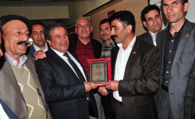 Ağrı'nın Eleşkirt Muhtarlar Derneği tarafından ilçe Sosyal Yardımlaşma Vakfı (SYDV) müdürüne plaket verildi.