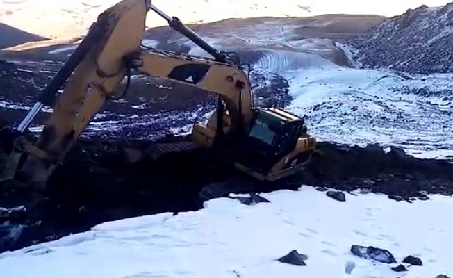 Ağrı'da, karla kaplanan Süphan Dağı eteklerindeki köylere içme suyu kanalı açmak için ekipler yoğun çaba mesai harcıyor.