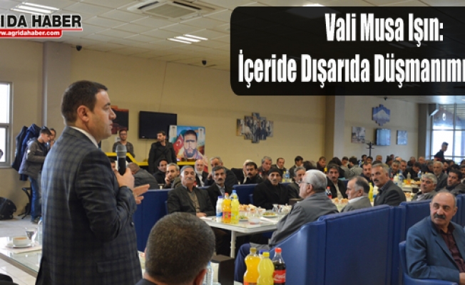 Ağrı Valisi Musa Işın, "İçeride dışarıda düşmanımız birdir. 32 yıldır PKK'yı bizim başımıza bela edenler, bugün Avrupa'da devletimize karşı hasmane tutum içinde olanlardır." dedi.