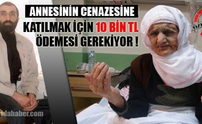 13 yıldır annesinin hasretini çeken İslami davadan hükümlü Yasin Demir, annesinin taziyesine gelebilmek için devlete 10 bin TL ödemek zorunda.