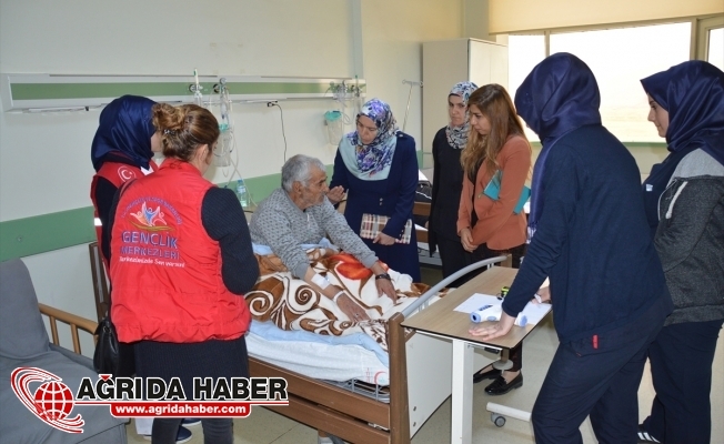 Hastane servislerini gezen genç gönüllüler, hasta ve yakınlarıyla bir süre sohbet etti.