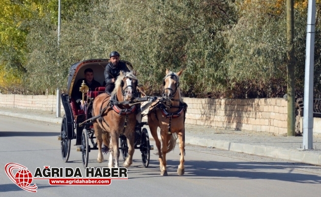 Ağrı'nın Doğubayazıt ilçesinde Belediye tarafından hizmete alınan faytonla, ziyaretçilere "nostaljik şehir turu" imkanı sunuluyor.