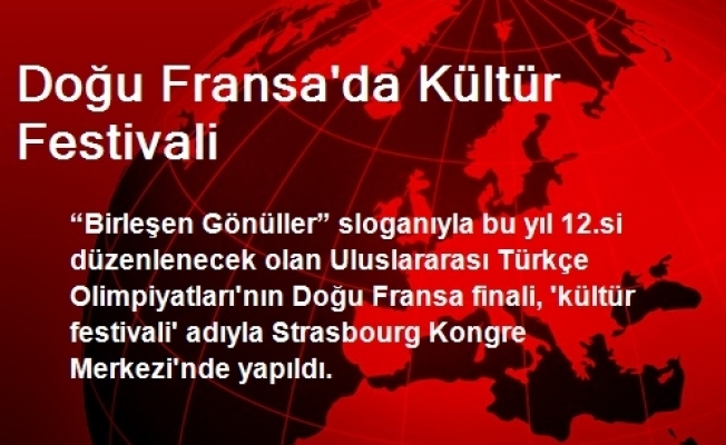 “Birleşen Gönüller” sloganıyla bu yıl 12.si düzenlenecek olan Uluslararası Türkçe Olimpiyatları'nın Doğu Fransa finali, 'kültür festivali' adıyla Strasbourg Kongre Merkezi'nde yapıldı.