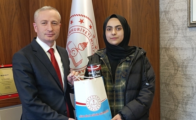 Ağrı İl Milli Eğitim Müdürü Hasan Kökrek, "Okulum Beni Bekler" projesi kapsamında başarılı bir şekilde eğitimini sürdüren Semerkant Mesleki ve Teknik Anadolu Lisesi 9. sınıf öğrencisi Zeynep Erçek’i makamında kabul ederek ödüllendirdi.