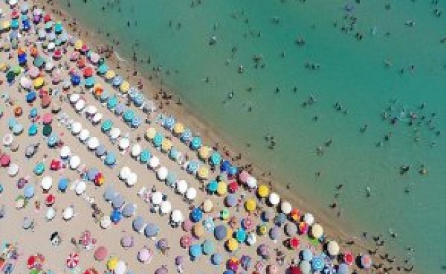 Halka açık plaja vatandaşların güneşten korunmak için getirdiği farklı renklerdeki şemsiyeler, altın rengi kumlar üzerinde renk cümbüşü oluşturuyor. Plajı yer yer tamamen kaplayan şemsiyelerin hava çekimlerindeki görünümü, kumun üzerine sıralanmış boncukları andırıyor.