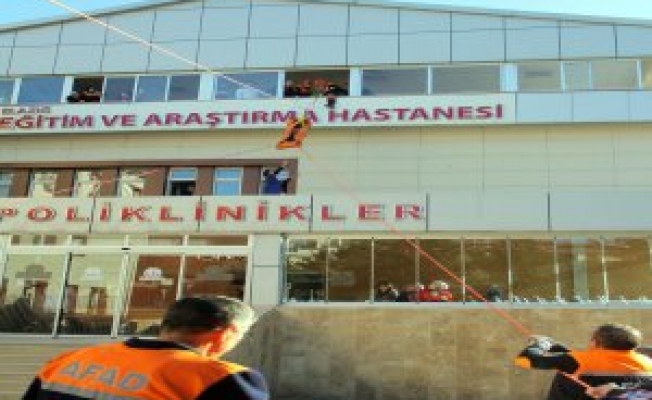 Hastanenin üçüncü katında mahsur kalan hasta ve çalışanlarının tahliyesi AFAD ekipleri tarafından yapılırken, göçük altında kalan bir hasta, halat sistemi ile pencereden aşağı indirildi. UMKE ekipleri ise hastanenin diğer bölümlerinde enkaz altında mahsur kalan hastalara tıbbi müdahale yapılması ve tahliye edilmelerinin ardından tatbikat sona erdi.