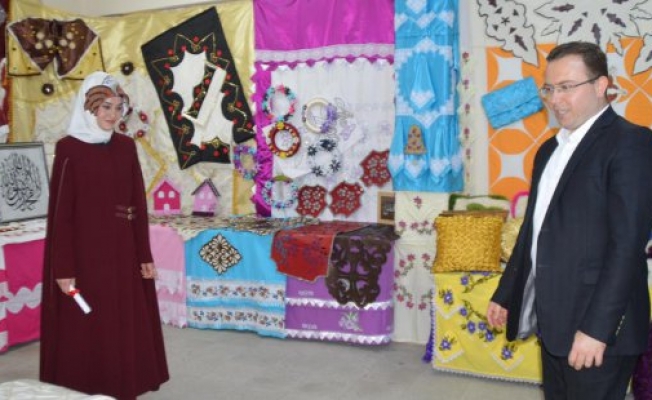AĞRI - Eleşkirt Halk Eğitim Merkezi (HEM) Müdürlüğü bünyesinde, el sanatları ve makine nakış kurslarına katılan kadın kursiyerlerin yıl boyunca hazırladığı eserler sergilendi.