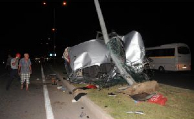 Antalya'da 23 yaşındaki Melih Hilaloğulları'nın kullandığı otomobil, aşırı hız ve dikkatsizlik sonucu kontrolden çıkıp aydınlatma direğine çarptı. Feci kazada araçta sıkışan sürücü ile 24 yaşındaki Akıncan Çavuş ağır yaralandı.