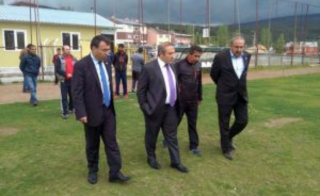 Sarıkamış Kaymakamı Yusuf İzzet Karaman, Belediye Başkanı Göksal Toksoy, Gençlik Hizmetleri ve Spor İlçe Müdürü Ali Koçak ile Sarıkamış Belediyespor Kulüp Başkanı Harun Hayali, İlçe Stadı'nda inceleme yaptı.