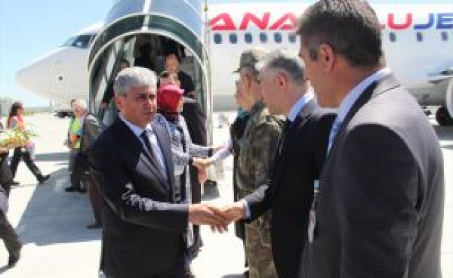Valilik bahçesindeki törende, vali yardımcıları ve kamu kurum müdürleri tarafından karşılanan Doğan'a, çiçek takdim edildi.