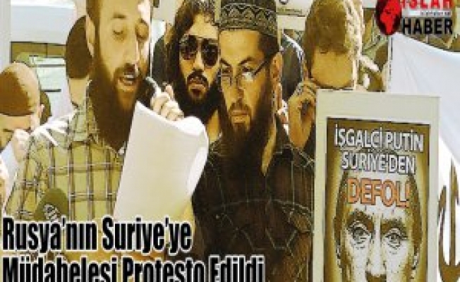 Protesto boyunca “Katil Rusya Suriye’den Defol!”, “Katil Esad! İşbirlikçi İran!”, “Ankara’dan Halep’e Direnişe Bin Selam!”, “Suriye Halkı Yalnız Değildir”, “Kafkasya’dan Şam’a Direniş Zafere!”, “Kahrolsun ABD, Kahrolsun Rusya!”, “Yaşasın Küresel Direnişimiz”, “Ümmet Uyuma! Suriye’ye Sahip Çık!” şeklinde sloganlar atıldı. Eylem tekbirlerle sona erdi.