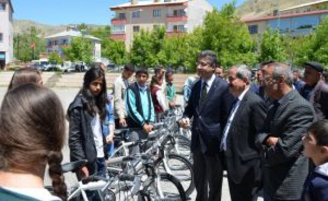 BİTLİS (AA) - Bitlis'in Tatvan ilçesinde, Temel Eğitimden Orta Öğretime Geniş (TEOG) sınavında başarılı olan öğrencilere bisiklet dağıtıldı.