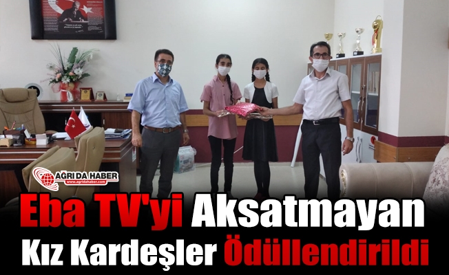 Milli Eğitim Bakanlığının başlattı canlı dersler kapsamında, Ağrı'nın Hamur ilçesindeki lise öğretmenlerinin verdiği eba canlı derslerini hiç aksatmadan izleyip katılım sağlayan iki farklı okulda okuyan üç kız kardeş, Hamur ilçe Milli Eğitim Müdürü Kaya Karakoç tarafından ödüllendirildi.