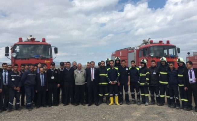IĞDIR Iğdır Havalimanı'nda, inişe geçtiği sırada motor kısmı alev alan yolcu uçağına müdahale tatbikatı gerçekleştirildi.