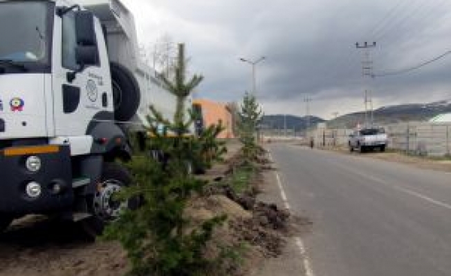 Kars'ın Sarıkamış ilçesinde ağaçlandırma çalışması yürütülüyor.
