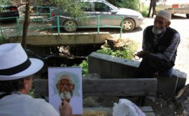 Azeri ressam Nevai Metin de Alapınar Mahallesi'nde ikamet eden yaşlıların portrelerini, yağlı boyayla tuvale yansıttı.