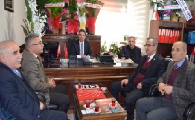 Eğitim İş Sendikası Malatya Şube Başkanı Hüseyin Kara ve yönetim kurulu üyeleri ile Tüm İşçi Emeklileri Dul ve Yetimleri Derneği Malatya Şube Başkanı Mehmet Tangüner ve yönetim kurulu üyeleri CHP Malatya İl Başkanı Enver Kiraz'a hayırlı olsun ziyaretinde bulundu.