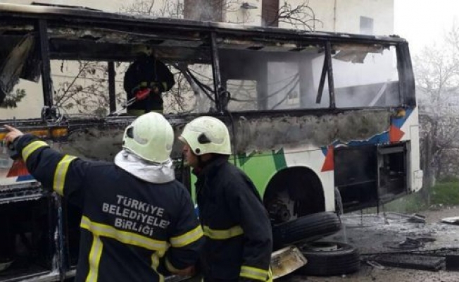 MALATYA (AA) - Malatya'nın Yeşilyurt ilçesinde park halindeki servis otobüsü yandı.