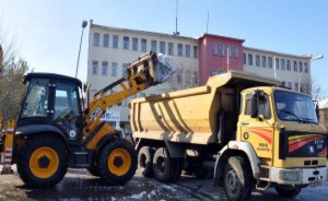 Belediye Başkanı Feyat Asya, yaptığı açıklamada, kar yığınlarını iş makineleri yardımıyla şehir merkezi dışına taşıdıklarını söyledi.