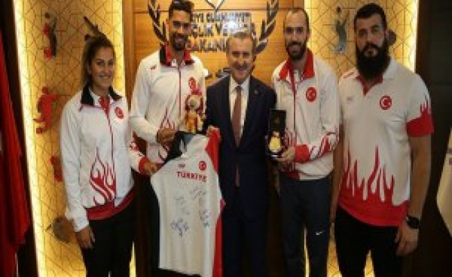 Gençlik ve Spor Bakanı Osman Aşkın Bak, 16. Dünya Atletizm Şampiyonası'nda madalya kazanan milli atletler Ramil Guliyev ve Yasmani Copello Escobar ile organizasyonda yarışan Eda Tuğsuz ve Özkan Baltacı'yı kabul etti.