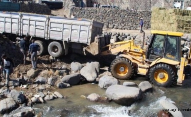 Ağrı'nın Taşlıçay ilçesinde dereye düşen kamyon iş makinesi yardımıyla çıkarıldı.
