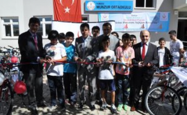 Sağlık Bakanlığınca başlatılan "Türkiye Sağlıklı Beslenme ve Hareketli Hayat Programı" kapsamında ile gönderilen 50 bisikletin dağıtımı Munzur Ortaokulu'nda yapıldı.