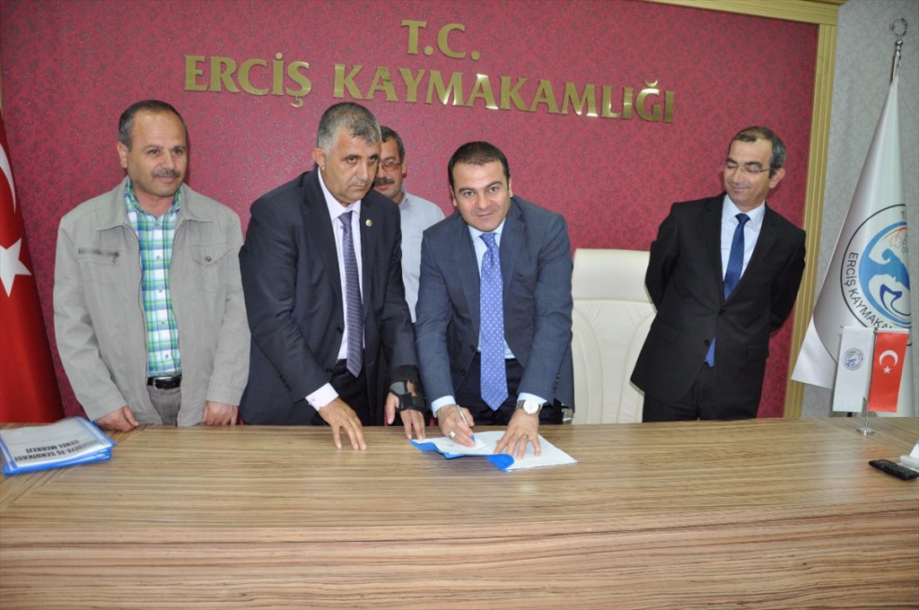 01 Haziran 2017 ve 30 Mayıs 2020 tarihlerini kapsayan sözleşme, Erciş Kaymakamı ve Belediye Başkan Vekili Mehmet Şirin Yaşar'la Belediye İş Sendikası Şube Başkanı Emin Yeşilova birlikte imzaladı.