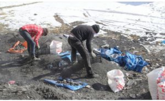 Başkale ilçesinde yaşayan bazı çocuklar, kaloriferli binaların çöplerindeki yanmamış kömürleri toplayarak para kazanıyor.