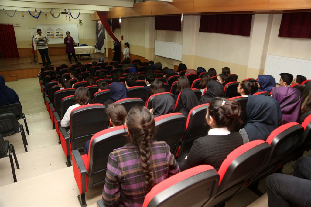 Okulun konferans salonunda 10. yılını dolduran dernekle ilgili öğrencilere bilgi veren üyeler, daha sonra parmak alfabesini kullanarak işitme engelli bir kişiyle tanışabilme eğitimini verdi.