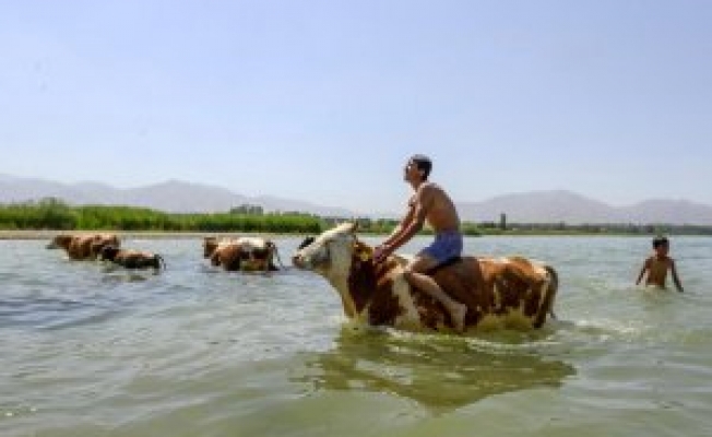 Çocuklardan Adem Altın, AA muhabirine yaptığı açıklamada, hayvanlarının günde 2-3 kez gölde yüzdüğünü belirterek, ilk günlerde hayvanların boğulmasından endişe duyduklarını ancak yüzdüklerini görünce gönül rahatlığıyla gölde serinlemelerini sağladıklarını söyledi.