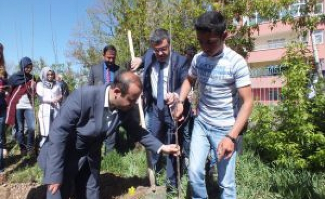 Kaymakam Ada ve öğrencilerin katılımıyla, Pasinler Mesleki Eğitim ve Teknik Lisesi bahçesine elma, armut ve vişne ağacı dikildi.