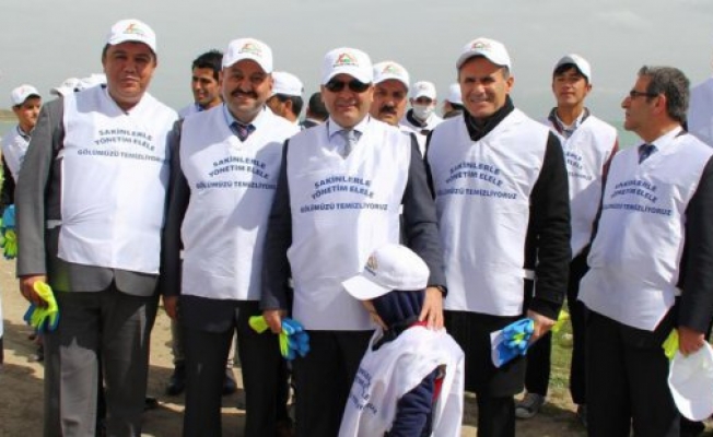 "Sakinlerle yönetim el ele gölümüzü temizliyoruz" sloganıyla başlatılan proje kapsamında, ilçe merkezindeki sahil yolunda çevre temizliği yapıldı.