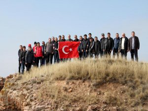 Vali Ahmet Deniz, Belediye Başkanı Faruk Köksoy, 25. Hudut Tugay Komutanı Tuğgeneral Erdem Kargın ile Ardahan Ticaret ve Sanayi Odası Başkanı Çetin Demirci, Halil Efendi Mahallesi'nde bulunan 2 bin 180 metre yüksekliğindeki Ramazan Tabyası'na tırmanarak, zirveye Türk bayrağı dikti.