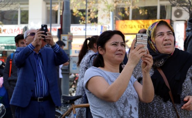 Bu sırada intihar girişimini fark eden vatandaşlar, inşaatın çevresinde yoğun bir kalabalık oluşturarak cep telefonlarına sarıldı. İnşaatın alt kısmında bekleyen kalabalıktan bazı vatandaşlar, intihar girişimini sosyal medya üzerinden canlı yayınla verirken, bir inşaat çalışanı ise yayını hemen girişimin olduğu bölgeden verdiği gözlendi. İnşaat çevresindeki apartmanlarda yaşayan bazı vatandaşlar da balkon ve pencerelerinden telefonla olayı çektikleri görüldü.