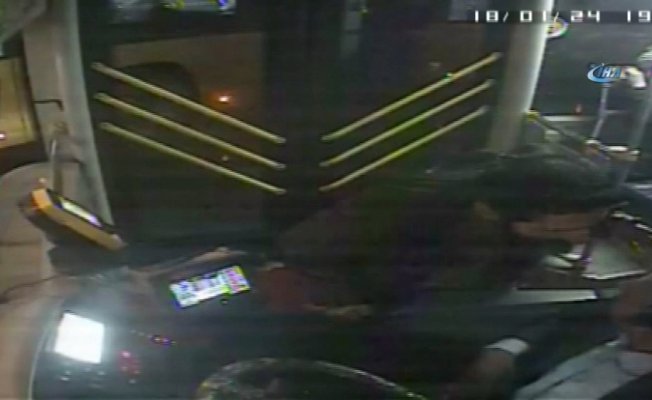 Şahsın kadın yolcuyla tartıştıktan sonra şoföre tornavidayla saldırdığı anlar otobüste bulunan güvenlik kameraları tarafından saniye saniye kaydedildi.