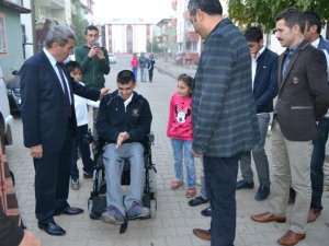 Bingöl İl Milli Eğitim Müdürü Yakup Sarı’nın da katılımıyla düzenlenen törende bedensel engelli öğrenci Çakır’a akülü arabası teslim edildi.
