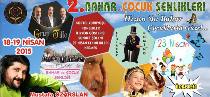 BİTLİS - Hizan Kaymakamlığı, 23 Nisan Ulusal Egemenlik ve Çocuk Bayramı haftasına denk gelen 18-19 Nisan tarihlerinde "2. Geleneksel Bahar ve Çocuk Şenlikleri" düzenleyecek.
