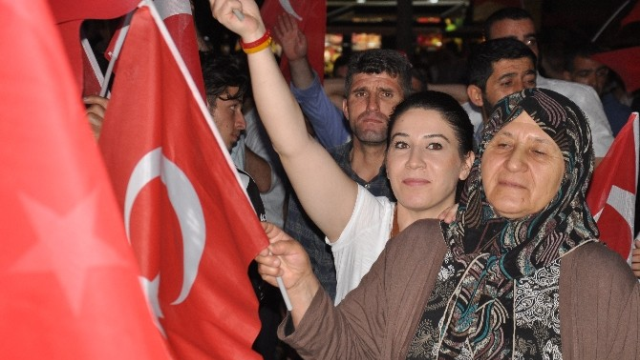 Yatsı namazı çıkışı ilçedeki Ulu Cami önünde toplanan çok sayıda vatandaş, sloganlar atarak Selçuklu Mahallesi'nde bulunan meydana kadar yürüdü.