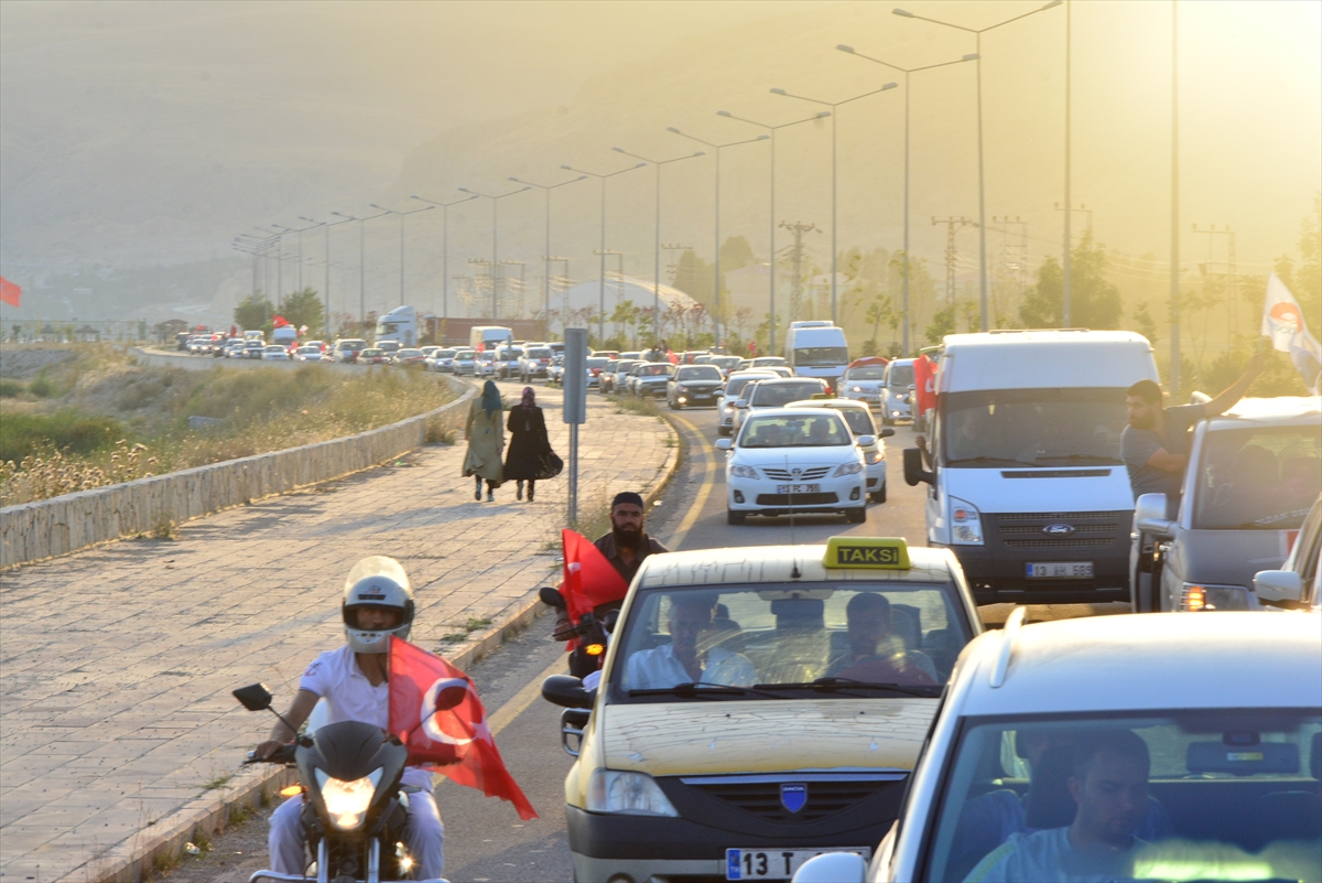Adilcevaz Belediyesinin organize ettiği etkinlikte, otomobil, kamyon, traktör ve tırlarla "demokrasi konvoyu" oluşturuldu. Yaklaşık bin 500 araç ile tur atan vatandaşlar, FETÖ'nün darbe girişimini protesto etti.