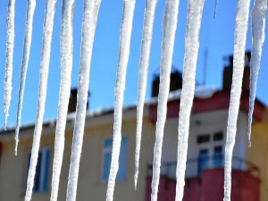 Tatvan ilçesinde etkili olan soğuk hava nedeniyle çatılarda boyu iki metreyi aşan buz sarkıtları oluştu.