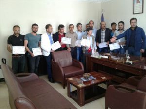 Belge dağıtım töreninde konuşan Güroymak Esnaf ve Sanatkarlar Odası Başkanı Ferit Gülcüoğlu, eğitimini başarı ile tamamlayan kursiyerlere destek vermeye devam edeceklerini söyledi.