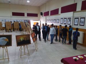 Korkmaz ve beraberindekiler daha sonra sergiyi gezerek öğrencilerin çalışmalarını inceledi.